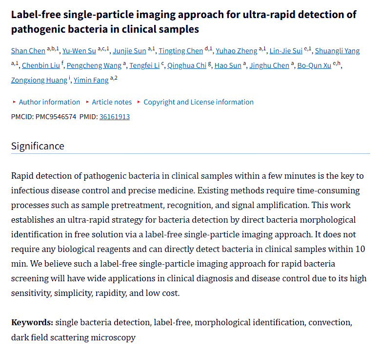Figure:Bacteria detection principle by a single-particle imaging approach